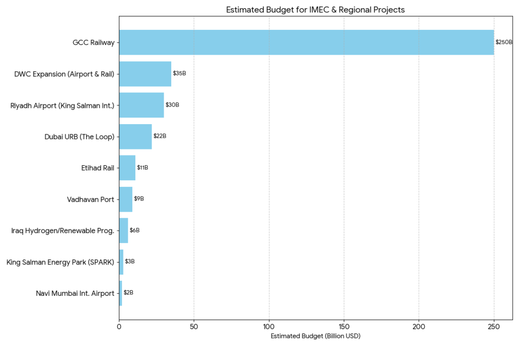 Saudi Arabia isn’t just watching; it is building a challenger that elevates the whole IMEC concept. The King Salman International Airport is designed to be a massive logistics “aerotropolis” spanning 57 square kilometres. With six parallel runways and a capacity for 120 million passengers by 2030, it aims to capture the east-west transit market. For IMEC, this is vital because it creates a second major logistics node in the desert. It ensures that the corridor isn’t dependent on a single point of failure; if Dubai is the maritime gateway, Riyadh is positioning itself as the air-cargo distribution engine for the Northern Gulf.